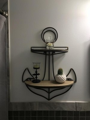 Anchor Wall Shelf - Danya B.: 2-Tier Maritime Storage, Metal Frame, No Assembly Required