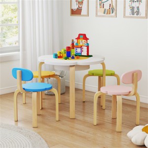 - This adorable activity set includes a flower-shaped table, two chairs with backrests, and two stools, creating the perfect spot for playdates, arts and crafts, or quiet reading.