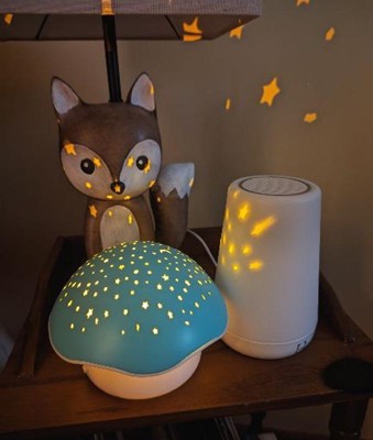 I received the mushroom as a part of the Stellar Testing Panel, and so far my toddler loves it. During the summer my 2 year old got into the habit of wanting to go outside before bedtime to say goodnight to the stars. Now that it's getting colder it hasn't been my favorite addition to our bedtime routine, so I was very excited to see if having this little projector might help her not feel like she needs to go outside before bed every night, and it totally has! Getting to turn the stars and moon on before bed has definitely sped up our routine and helped with some bedtime resistance because she is excited to get to see her stars. Overall I'd say it's been an awesome addition to bedtime and nap time! Regarding the design- it is very cute and the colors could match most rooms. I like that it is small and not super gaudy looking. The texture of the plastic is a bit slippery so I've noticed it is easy to drop (whether it's me or my toddler picking it up). Overall it is very easy to use. I noticed the button that turns on the lights sometimes takes a few pushes/messing with it to turn on and other times it works fine. So far that hasn't been a problem though. We have another sound machine so we haven't used the sound features a ton. When we have used the sounds I've noticed that they aren't are crisp and clear as a dedicated sound machine would be and the sounds aren't as good, so I wouldn't really recommend using it as a dedicated sound machine and would warn anyone buying it to have low expectations for that feature. My daughter does like the nature sounds, but we never use them for sleep. And on the cry feature- I didn't really expect to use that much since my daughter is a toddler, but I turned it on anyway just to see what would happen and I have to say if my daughter is just fussing a bit it totally worked to distract her and help her relax! if she actually needs something, obviously it doesn't really work, but it's great if she wakes up prematurely and starts to fuss. It's pretty sensitive. The only other thing I have to say is that the lights for the projector (in my opinion) can be kind a bright. It hasn't been a problem for my daughter, but I could see it being too bright for some kids.