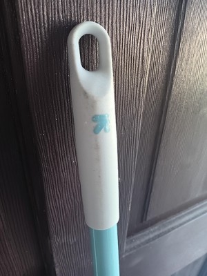 I love the little details added to this broom like the soft foam halfway through the handle for a comfortable grip and comfortable top as well. This broom has softer bristles than the broom I usually use, which is a little harder to get used to, but it does reach in tight spaces and under appliances better because of that. I do wish a dust pan was included with the broom.