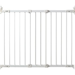 The KidCo Angle Mount Safeway (R) is THE gate for all top of stairs applications, including walls or staircase balusters that do not line up, but can also be used in hallways or as a room divider. As a hardware mounted gate, it provides maximum safety at the top of stairs and in high traffic doorways because there is no bottom threshold to potentially trip over as found on pressure mount gates. Optional 10" extensions are available for larger openings up to 63".