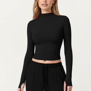Anna-Kaci Active Women's High-Neck Cropped Long-Sleeve Top with Soft Textured Fabric