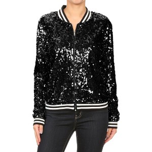 Anna-Kaci Sequin Shiny Bright Color Bomber Zip-Up Solid Jacket for Party Wear - 1 of 4