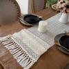 Anna-Kaci Textured Woven Table Runner with Fringe Edges and Bohemian Stripe Pattern 47x11.8 in