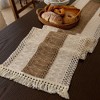 Anna-Kaci Textured Woven Table Runner with Fringe Trim and Neutral Stripe Pattern 47x11.8 in