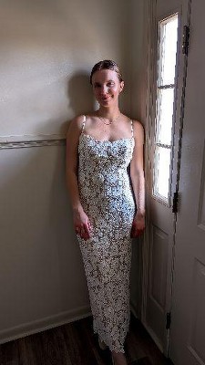 Stunning details. I sized up to a medium & it fits perfectly. So elegant and perfect for a bride to be or engagement photos