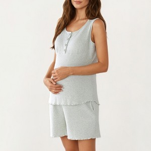 Anna-Kaci Women's Maternity 2-Piece Set Sleeveless Henley Pajama Top with Relaxed Fit Shorts and Soft Textured Fabric
