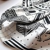 Add a touch of sophistication to your wardrobe with this satin square scarf featuring a striking geometric design. The smooth, lightweight satin fabric offers a luxurious feel, while its generous size provides endless styling possibilities. Perfect for both casual outfits and formal attire, this scarf combines contemporary style with timeless elegance.