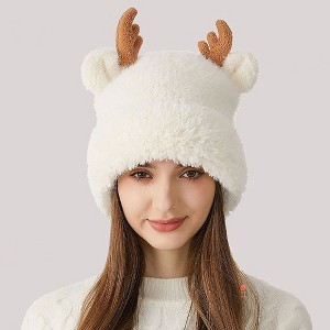 Anna-Kaci Women's Reindeer Antler Fleece Hat - Cute & Warm Winter Accessory - White