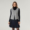 The Anna-Kaci Women's Textured Button Front Vest Top features a refined tailored silhouette with subtle woven texture throughout. Designed with an asymmetrical hemline and angled front closure, this vest creates visual interest while maintaining a clean, polished look. The sleeveless cut allows for easy layering over shirts and blouses, while the structured shape offers a flattering drape. Crafted from a midweight woven fabric, it delivers a crisp feel with elevated styling appeal.