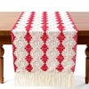 Anna-Kaci Woven Table Runner with Geometric Diamond Pattern and Fringe Ends - Red
