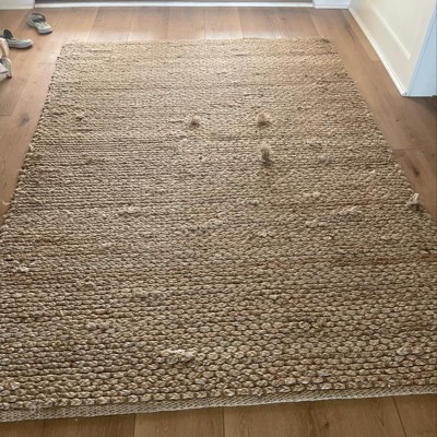 A: Hi Target Shopper - Thanks for asking! This versatile area rug is hand woven. The rug material is 10% Jute, and the backing material is 26% Latex, 14% Cotton. I recommend checking out the "guest reviews" you may find other guests' thoughts, and opinions helpful. Glad you stopped by! – Julie