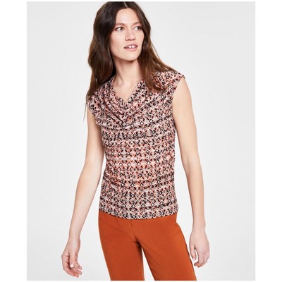 Anne Klein Womens Printed Pullover Blouse, darkorange, Medium