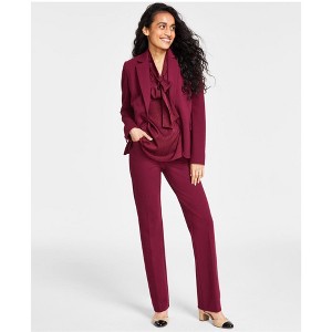 Anne Klein Womens Solid One Button Blazer Jacket, wine, 8
