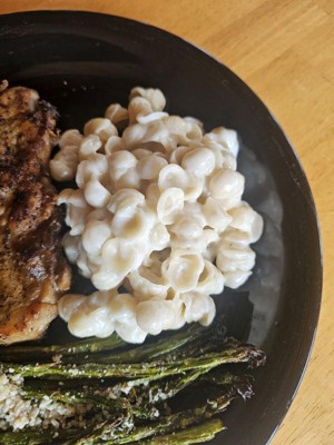 [This review was collected as part of a promotion.] The packaging was inviting, the consistency of the shells and the cheese was good but I expected a stronger cheddar taste. Great for a last minute meal