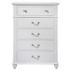 The Picket House Furnishings Annie 5-Drawer Chest is the perfect bedside addition to your bedroom! This chest comes with five, spacious drawers; perfect for keeping all of your bedside belongings within reach. The bottom drawer features a dust proofing bottom to help keep all of your belongings in great condition. The crystal-like drawer handles and knob add an extra layer of style to this already stunning piece. Bevel edges and a clean, crisp white finish complete the look of this transitional design.