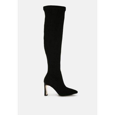 The stylish boots are sure to take your ensembles up a notch with the metallic flared slim block heel and the chain belt detail which elevates the design of the boots. The boots are eccentric and also comfortable with soft cushion insoles. Type: Boots Upper Material: Microfiber Outer Sole: TPR Closed Pointed Toe Flared Slim Block Heels Chain Belt Detail Zipper Closure Comfortable Cushion Insoles Heel Height: 3 inches SH5241
