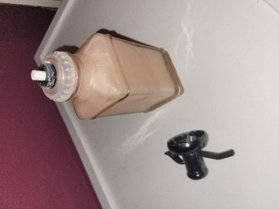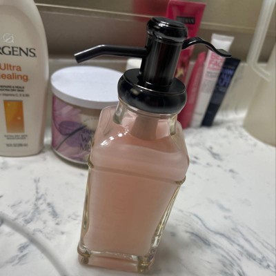 A: I bought it today and it's really pretty. I filled it with liquid soap from bath and body works.