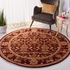Elevate your living space with the opulent touch of our Hand-Tufted Wool Area Rug, crafted with precision in India. Spanning a versatile 3'-6" in diameter, this round rug showcases an exquisite pattern of ornamental florals and filigree that exudes timeless elegance. The rich wine hue serves as the perfect canvas for the intricate gold accents, rendering a luxurious appeal that is sure to enrich any d?cor.