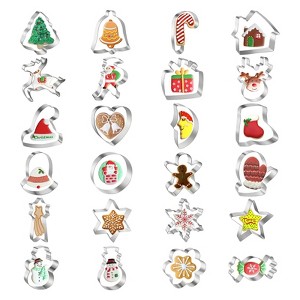 - 24-piece Christmas cookie cutters set features distinct designs like Christmas tree, gingerbread man, and snowflake, perfect for creating festive treats during the holiday season.