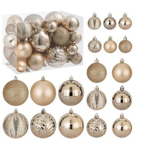 Aoibox 36 Pack Christmas Ball Ornaments Set Shatterproof Hanging Decorations 1.57-3.14 Inch Indoor Outdoor Tree Wreath Champagne