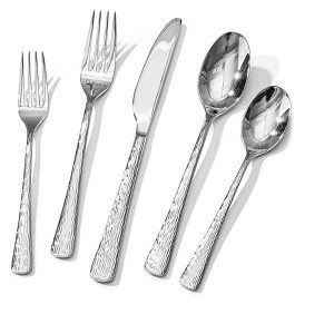 Upgrade your dining experience with this premium 20 - piece flatware set. Crafted from 18/10 food - grade stainless steel, it's durable, rust - proof, and won't bend. Each piece has a unique hammered pattern on the handle, adding a touch of sophistication and elegance to your table. The set includes 4 dinner knives, 4 dinner forks, 4 dinner spoons, 4 salad forks, and 4 teaspoons, serving 4 people. It's suitable for a variety of occasions like family dinners, restaurant settings, weddings, and parties. This set is also a wonderful gift choice. For easy cleaning, it's dishwasher - safe. However, to maintain the mirror finish, avoid using abrasive cleaning tools. With this flatware set, you can enjoy a more refined and convenient dining experience.