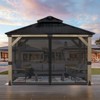 The Aoodor Gazebo Replacement Netting Screen provides essential mosquito protection for your 10'x10'/10'x12'/10'x13'/12'x12'/12'x14'x12'x16' gazebo or canopy, enabling comfortable outdoor activities. This universal 4-panel set allows you to host BBQs, enjoy meals outdoors, relax with evening drinks, or read undisturbed by creating a practical insect barrier. The fine mesh maintains ventilation while reducing mosquito entry, with an added insect-repellent treatment to discourage pests. Double zippers on each panel facilitate easy access when entering/exiting or carrying items. Made from durable, weather-resistant 100% nylon meeting US CPAI-84 fire retardant standards, it installs easily using included hooks (for sliding rails) or C-rings (for ≤1" tubes). Replace worn netting to restore your gazebo's functionality.