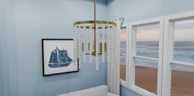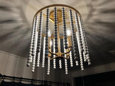[This review was collected as part of a promotion.] This is a gorgeous accent to any room. The brass accent pieces paired with the wood beads looks so good. We have one room that has gold accents and it goes perfectly in there. It’s easy to install and has the perfect amount of brightness.