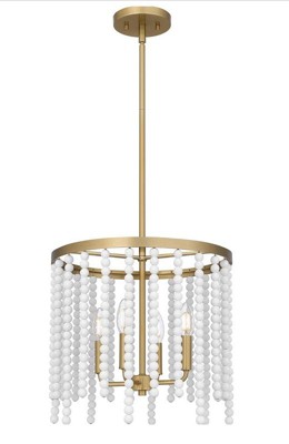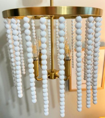 [This review was collected as part of a promotion.] I’m so in love with this pendant light! From the aged brass to the dazzling white wooden beads and the four lights. It is so chic and classy. This light completes the look of this room in my home.