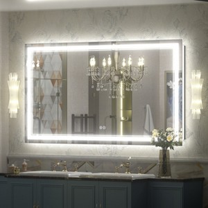 Upgrade your bath with this 3-year warranty LED frameless mirror, featuring 24-volt output voltage super-bright real cri90+ 192 leds/m light strip (others are 12-volt low-power light strips, which are not bright enough.) and tempered glass material (almost unbreakable). 3 color temperature and brightness adjustment, smart anti-fog design, brings a modern look to your space.