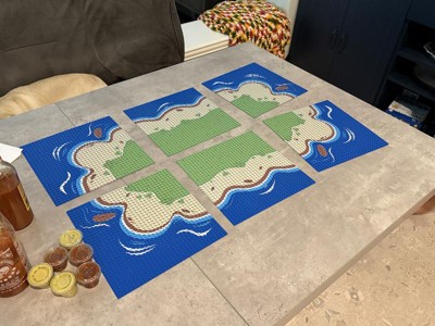 The boys love these! They piece together like a puzzle that makes a large island, but you can also use them individually, depending on your personal design. They work great with Lego brand and non-Lego brands.