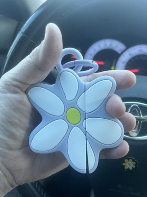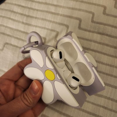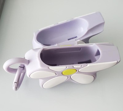 Adorable AirPods cover! I was so sick of my daughter's AirPods case falling out of her pocket (side-note: why are the pockets in women's clothing soooo uselessly shallow??), and this is a cute case that is easy to keep track of. The spring-loaded metal carabiner clips easily on to her backpack or soccer bag when rushing out of the house and doesn't pop open unless purposely pushed open. It takes a little bit of wiggling to get the ear buds into the daisy, but then it's snug and feels secure. If it does happen to be dropped (or say....accidentally drop kicked across the garage in a rush to school), the silicone is cushiony and protective. The opening on the bottom is convenient for charging, and the case is also compatible with wireless charging. Dirt is removed easily from the case with a disinfecting wipe or damp paper towel (from said hypothetical garage floor tumble). Take care to note the difference in the Pro vs regular generation of AirPods when purchasing.