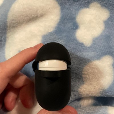 Purchased the Airpods Pro and needed a case for them. I need a case so that I can tell my Airpods apart from my family members, so I purchased this case. I was looking for a fun case but all they had left was this black silicone one. Popular item! I am happy with this case as it's a thicker material and I like that it has a round ring for easily attaching to a bag, etc. Has a hole where the battery light can be seen and a space where the charging chord can fit. Simple but perfect.