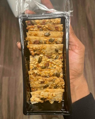 [This review was collected as part of a promotion.] Before tasting these crisp, I wasn’t sure what to think reading the box. In my mind, they seemed like a glorified trail mix on top of phyllo, boy was I wrong. These crisp are truly delicious. They are sweet, crunchy, and light, they will be the perfect addition to our holiday party. We tasted them right out of the box and also ate them with cream cheese, apples and honey, a yummy treat. I received an incentive to write this review.