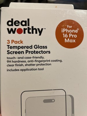 Apple iPhone 16 Pro Max Screen Protector Glass Shield 3pk - dealworthy™: Shatter-Resistant, Anti-Fingerprint, Tempered Glass