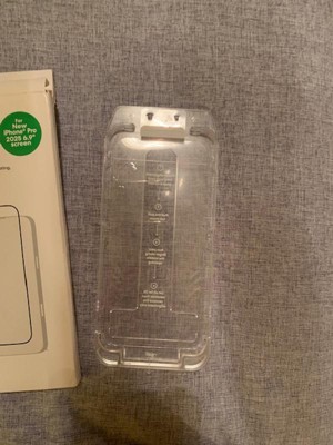 I like this setup for the screen protector. So it comes in its own case and all you’re really doing is cleaning your screen really good with a wipe and then peeling and sticking the case to the phone.