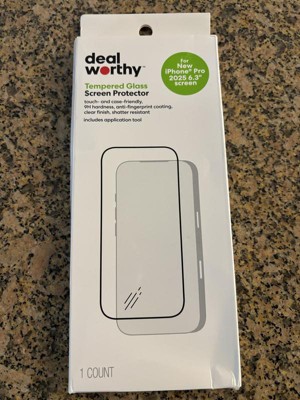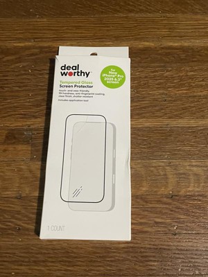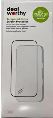 The Apple iPhone 17 Pro Screen Protector - dealworthy™ Clear offers robust protection with its shatter-resistant tempered glass material. Designed to maintain screen clarity, it features an anti-fingerprint coating to keep your display clean. With precise dimensions of 6 inches in length and 3 inches in width, this protector ensures a snug fit. Its ultra-thin 0.01 thickness preserves touch sensitivity, making it an essential accessory for safeguarding your device.