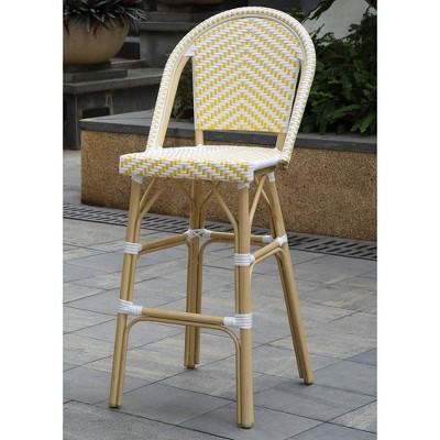 This outdoor wicker bar stool combines aesthetics and functionality, ideal for upgrading your home or commercial space. Ergonomic Design: 20.87" seat width & 16.93" seat depth with 17.72" high backrest for full-body support. Sturdy & Heavy-Duty: Reinforced metal legs + non-slip caps ensure stability, weight capacity 330 lbs (150 kg). Versatile Use: Weather-resistant materials suit patios, bars, restaurants, and cafes. Easy Maintenance: Wicker surface cleans with a damp cloth; cushion is removable. Dimensions: 20.28"L×20.28"W×45.28"H, net weight 42.77 lbs