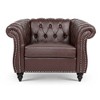 APRILSOUL Dark Brown 1-Seater Sofa Soft PU Leather, TB117 Compliant, Staggered Pull Buckles, Painted Birch Legs