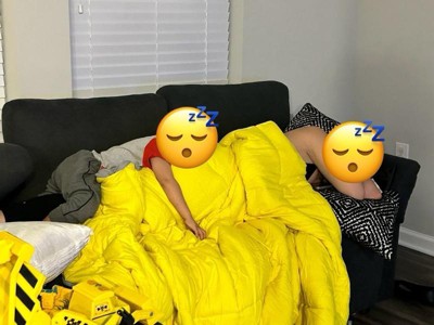 [This review was collected as part of a promotion.] This blanket was so comfy! It’s big so it covered our full couch for movie night. My son calls it the minion blanket and loves to wrap himself up like a burrito. Eventually falls asleep 5 min later as it’s an automatic sleep maker! Great product!