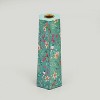 Bright & Refreshing Floral Design: Featuring an aqua and yellow enamel floral print, this 9-inch taper candleholder brings a vibrant, nature-inspired accent to your home. Its handcrafted charm and cheerful palette make it ideal for seasonal and year-round styling