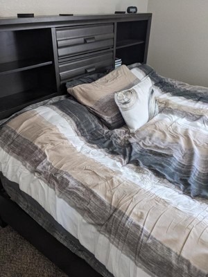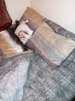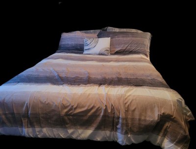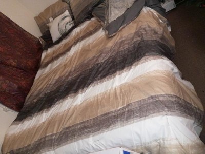 [This review was collected as part of a promotion.] Saben Comforter Set with Cotton Bed Sheets are a really cool looking comforter set. It looks almost like a cool gradient effect almost like big ombre stripes. The sheets and some of the pillow cases look like an artist shading in a drawing with a charcoal pencil. The comforter it's self is not very thick but it keeps you warm. Good product .
