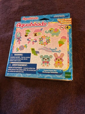 Pastel Fancy Set comes with fancy and adorable designs - pastel color animals, house and even accessories!When done designing, just spray your creations with water, no heat is required. Suitable for all children ages 4 and up.Aquabeads was created by Epoch Co., Ltd. in 24 as the original "stick with water" bead toy. Not suitable for children under age 3 due to small parts. Box contains1x Pastel Fancy Set