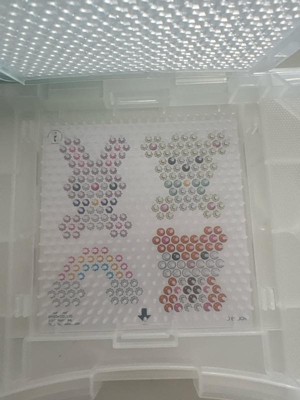 [This review was collected as part of a promotion.] This toy was cute but frustrating. The beads stuck together well, but they are a little fragile- it comes with key rings to attach but there is no way anything would hold up if hung from a backpack. The case concept is good- but the beads are hard to get out of the case if you pour them in. And it’s super easy to spill. The case doesn’t close securely either so it’s an accident waiting to happen. Not too big to store, but it is a pain to play with. My daughter also struggled with the beads moving in and out of the little prongs to form the designs and got frustrated a few times. The designs themselves were cute.