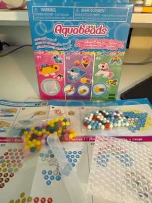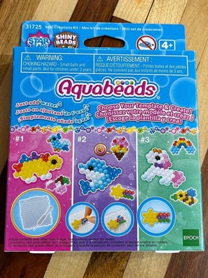 Aquabeads is the Original Water-Activated Bead Craft Kit! Since 2004, children throughout the world have created millions of Aquabeads designs. Mini Creations Kit includes 120 beads, quarter sized layout tray, water pipette, template sheet with instructions. Choose your template and create! Template includes dolphin set, unicorn set, and dinosaur set. Following the template sheet, place the beads onto the tray to make your creations. Using the water pipette, add water onto the beads to make them magically stick together! Includes 120 solid, jewel, polygon, and star beads in 13 colors including the new glittery "Shiny Beads", quarter sized layout tray, water pipette, and template sheet with instructions. For children ages 4 and up. Aquabeads was created by Epoch Co., Ltd. in 2004 as the original "stick with water" bead toy. For children ages 4 and up. (Not suitable for children under age 3 due to small parts.)