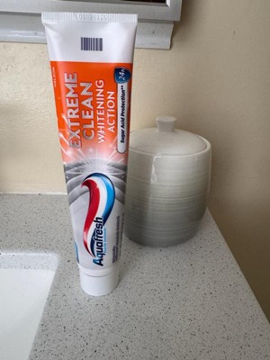 [This review was collected as part of a promotion.] I love this new toothpaste extra clean aquafresh it protects your teeth from sugar acid for 24 hours and this stuff really works. The old aqua fresh didn't work this good but this new extreme clean oh yeah it works I will be buying this toothpaste from now .
