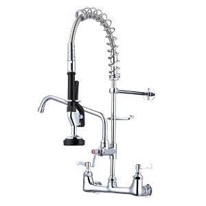 Aquaterior Kitchen Sink Faucet Pre-Rinse Commercial Faucet Wall Mount with Add-On Pull Down Chrome cUPC NSF ANSI CEC