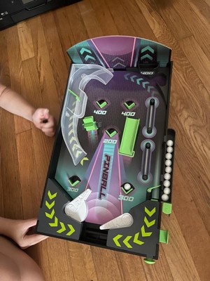 My kids picked this out through the holiday ad. I really didn't look it over much before purchasing but I figured a pinball machine is a pinball machine. There are no lights and sounds to it, no score keeping and no cover on the top. The balls can shoot out and you have to chase them. They are also small, about the size of a marble so caution if you have toddlers. It is cheaply made out of plastic and cardboard that the ball storage falls off when you shoot the balls. We went to take it apart to put it back in the box for storage but the legs felt like they were going to break so we left it. Which is another pain storing it because the balls are separate. This is something that looked cool and could have been but was a complete miss. Very dissappointing, find a better option. Should be a quarter of the price it is.