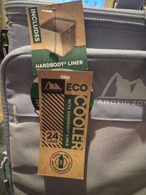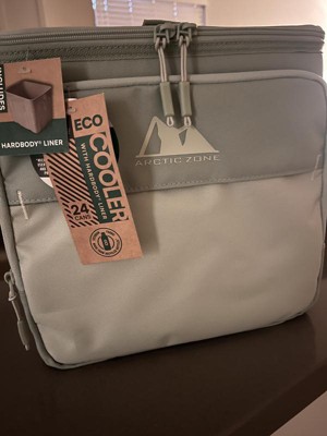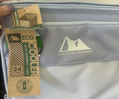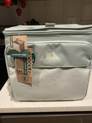 The Arctic Zone Essentials 24 Cans Hard Sided Cooler is a great cooler. Big enough to use for beach, baseball games, lunch, etc. Love the hard inside. Love the open piece on top so you don't have to unzip every time, as zippers can be hard to open for kids and older people. Love the outside front zippered area, but wish there was another one on the back.