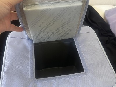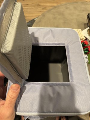 This High Density thermal insulation, with Ultra Safe leak proof, clean easy lining is perfect for soda, waters, lunches. It fits 25 cans. There is a zippered front pocket, a top opening so you can reach in with opening. Very convenient.